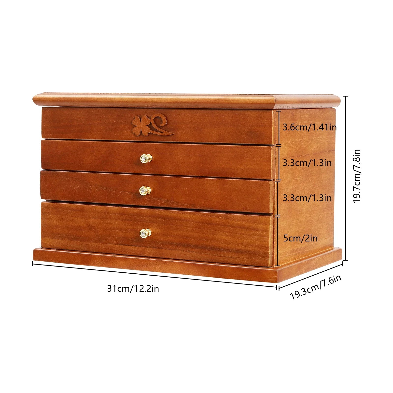 - Tiroirs : trois tiroirs spacieux pour bracelets, montres et accessoires volumineux